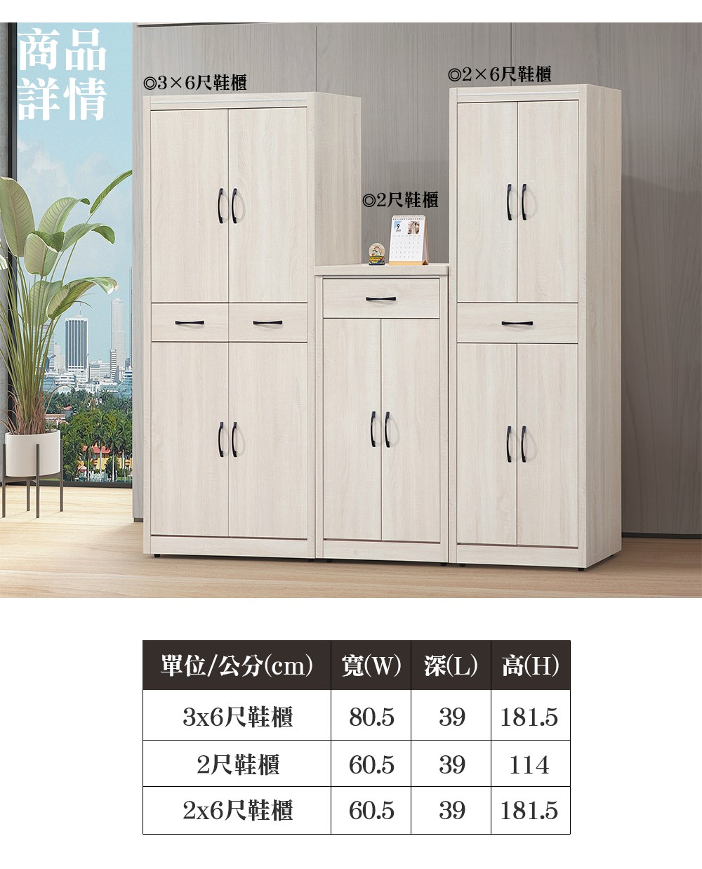 HOPMA家具 摩登三門五層鞋櫃 台灣製造 玄關收納櫃 置物邊櫃 鞋架-寬76 x深32 x高85.5cm;內徑深度30.5cm