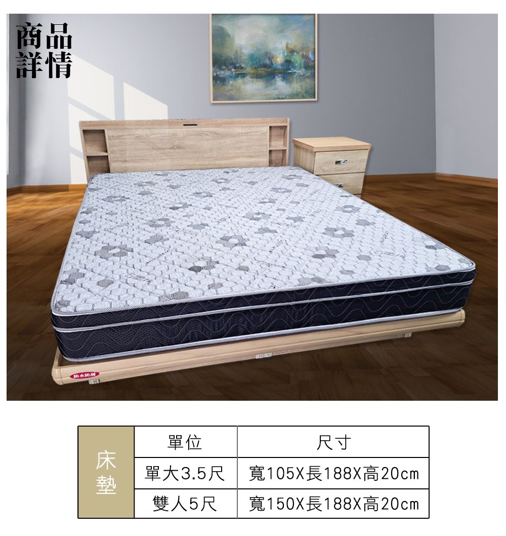 Homelike 喜家居緹花二線獨立筒床墊-雙人加大6尺(1663)