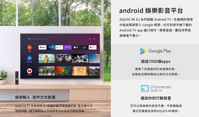 SHARP夏普 65吋4K UHD Android連網液晶顯示器 4T-C65DJ1T