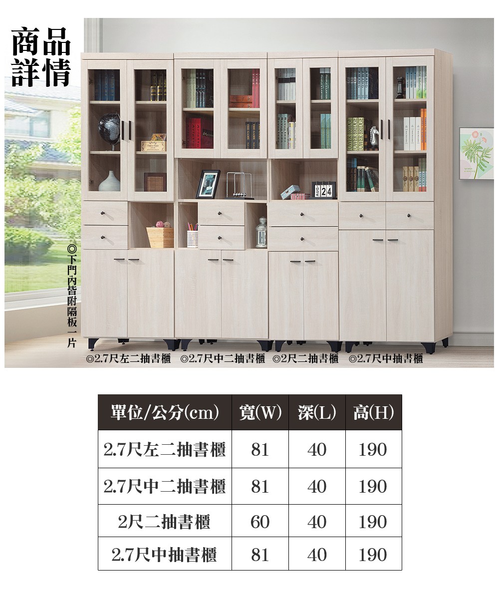 直人木業-DORIS現代風下抽玻璃高被櫥書櫃80公分