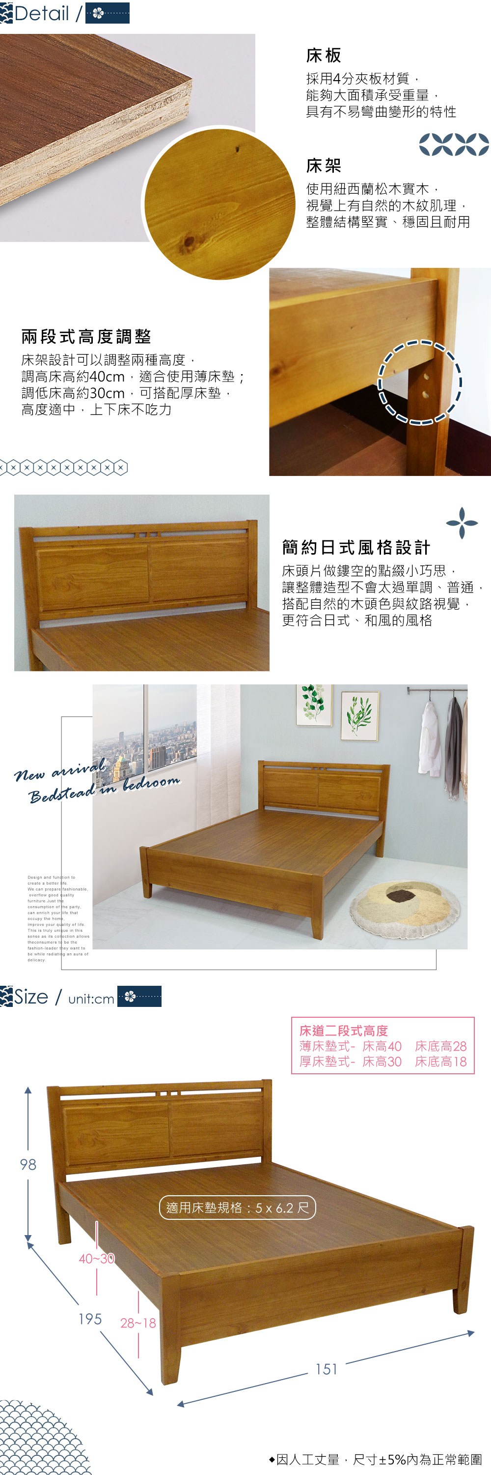 Homelike 喜家居雙人5尺日式床台組(兩色可選)(1909)梧桐木