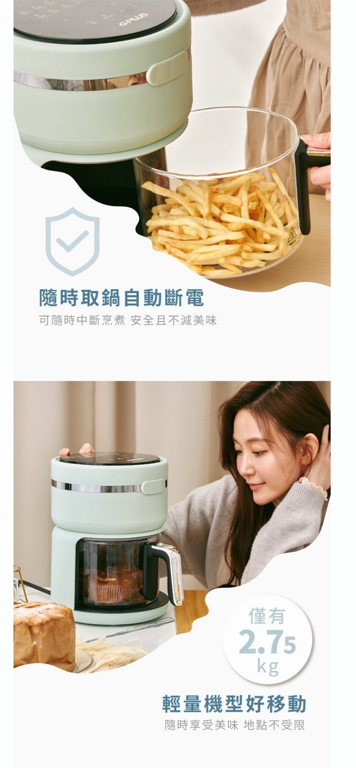 拓勤  G-PLUS 樂透鍋 智慧玻璃氣炸鍋    GP-J02粉綠