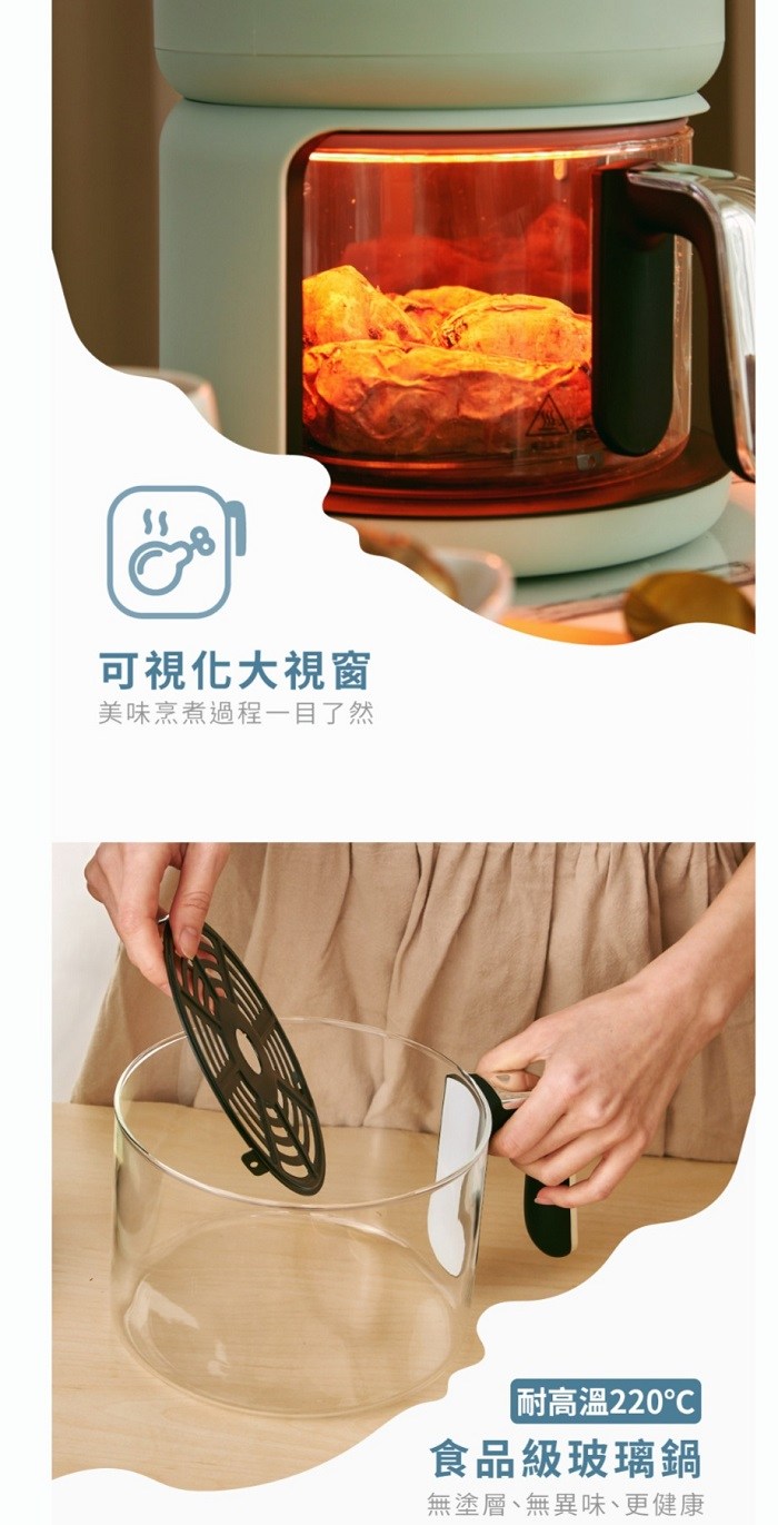 拓勤 G-PLUS 樂透鍋 智慧玻璃氣炸鍋 GP-J02粉綠