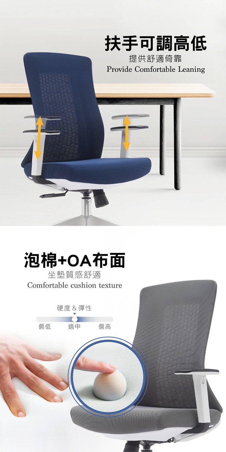 * 扶手可調整高低,提供舒適倚靠