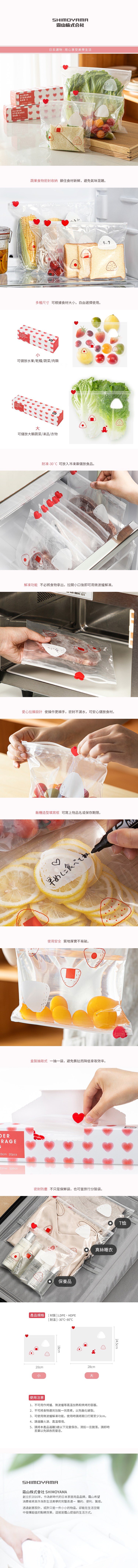 點我下載【日本霜山】印花風愛心滑扣夾鏈PE保鮮分裝袋-小款-60入