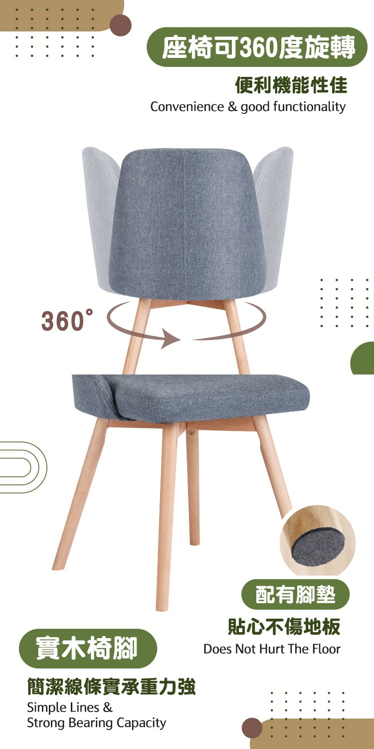 * 搭配簡潔線條實木椅腳承重力強