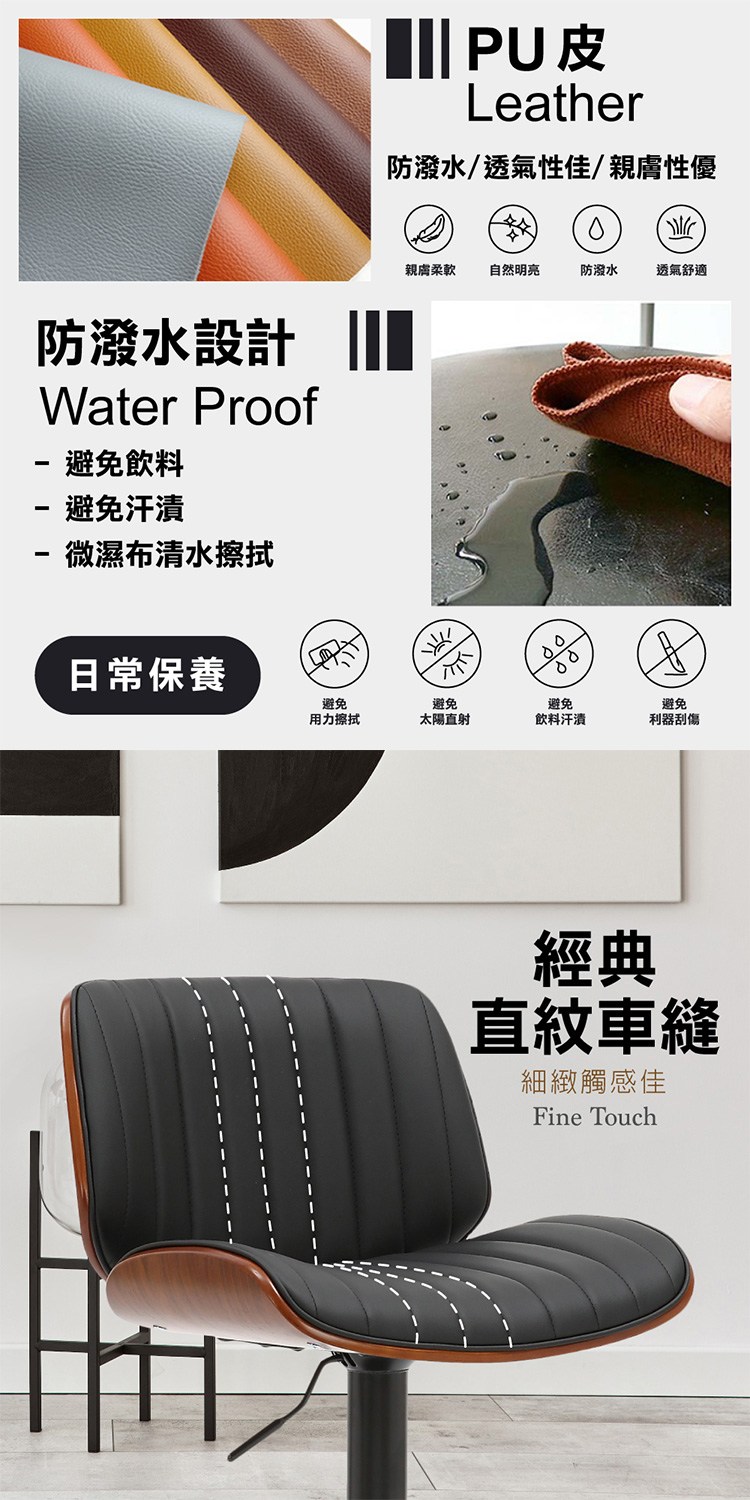 * 防潑水透氣PU皮椅面、易於清潔