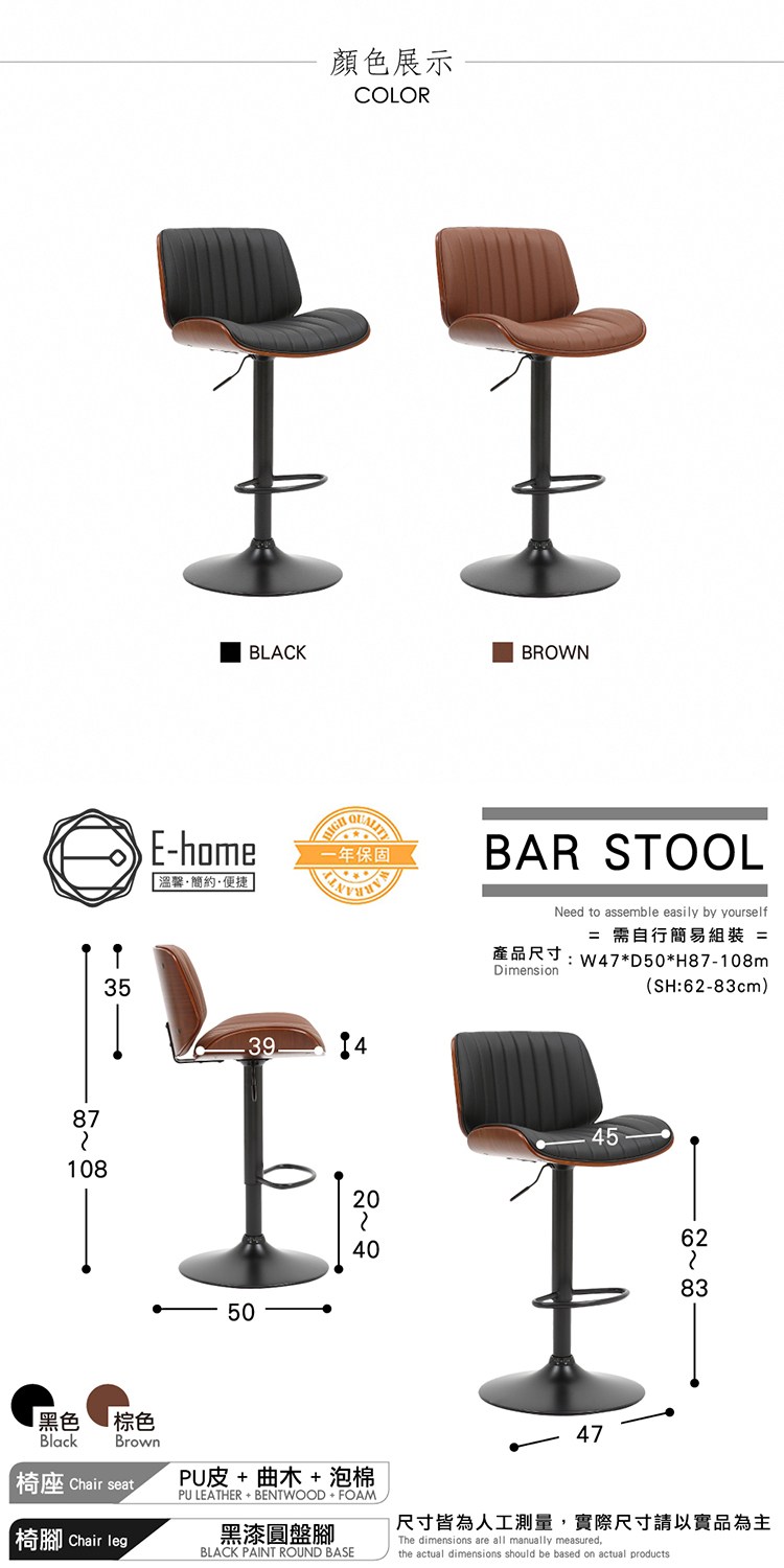正常使用下,結構保固一年,立即添加到購物車,您將體驗此吧檯椅帶給您的生活變化!