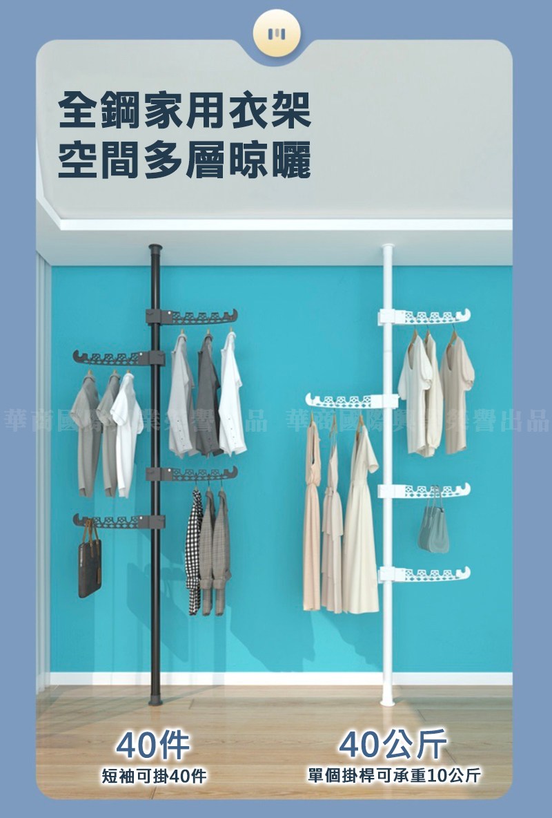 頂天立地 晾曬架 晾衣架 頂天立地置衣架臥室落地晾衣架家用免打孔伸縮衣櫃收納置物衣帽架『xy15298』