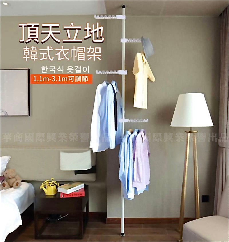 【台灣公司 可開發票】頂天立地晾衣架簡易落地臥室衣帽架免打孔組裝家用室內衣柜置物架