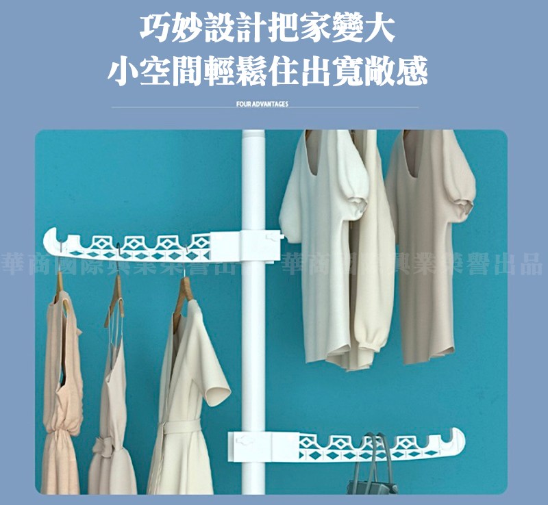 【沐覺mojo】頂天立地加粗單管不鏽鋼掛衣架_32mm加粗管徑4掛桿(工業風衣帽架 晾衣架)優雅白