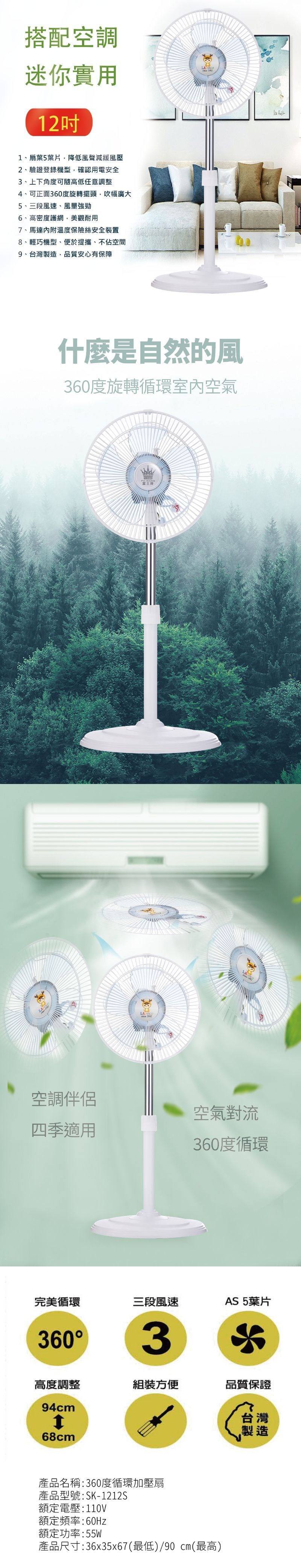 LAPOLO 12吋360度循環加壓扇 SK-1212S