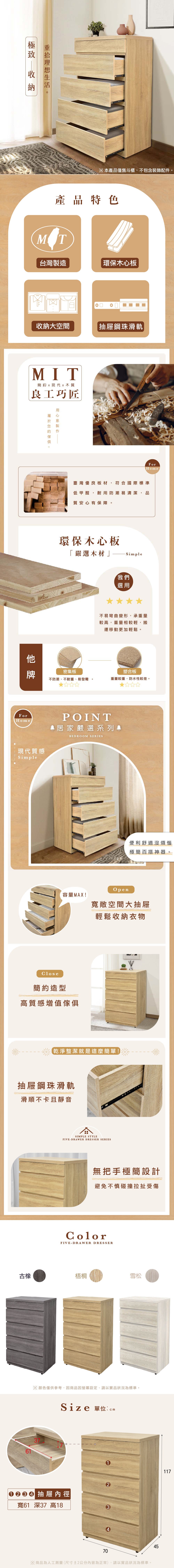 IHouse-沐森 MIT木心板 簡約風收納 高5斗櫃梧桐