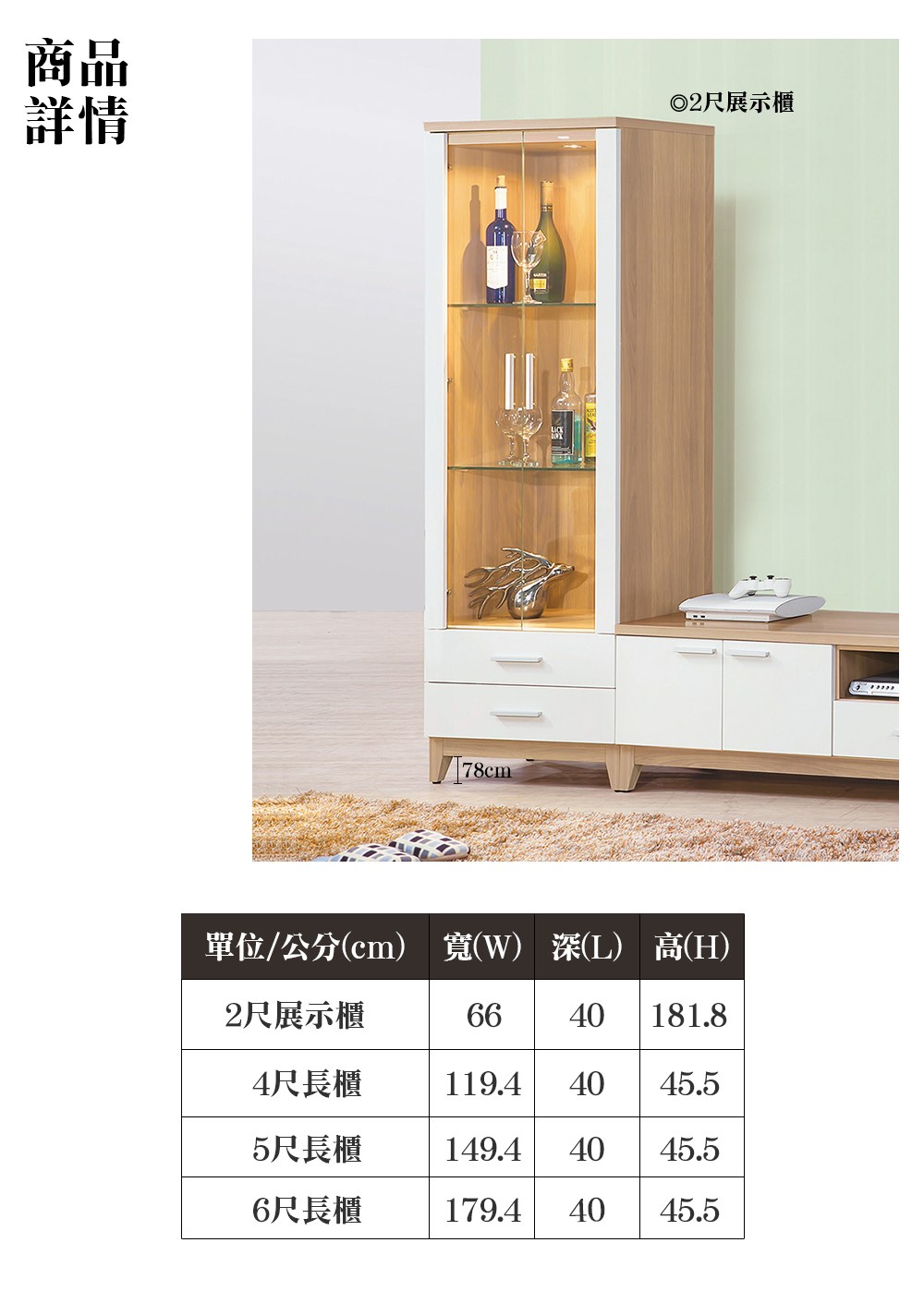 【顛覆設計】雅麥莉白橡色2.2尺展示櫃