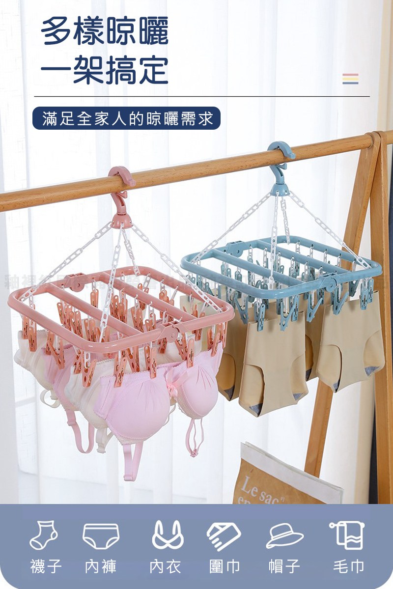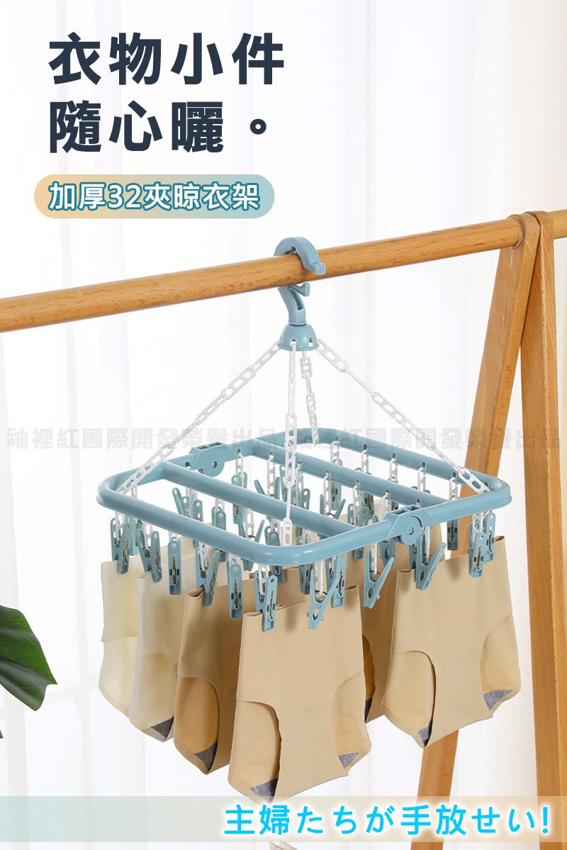 方形多夾加厚晾衣架 32夾 折疊衣架 大容量 多夾設計 多功能衣架 衣夾 【小麥購物】【L044】