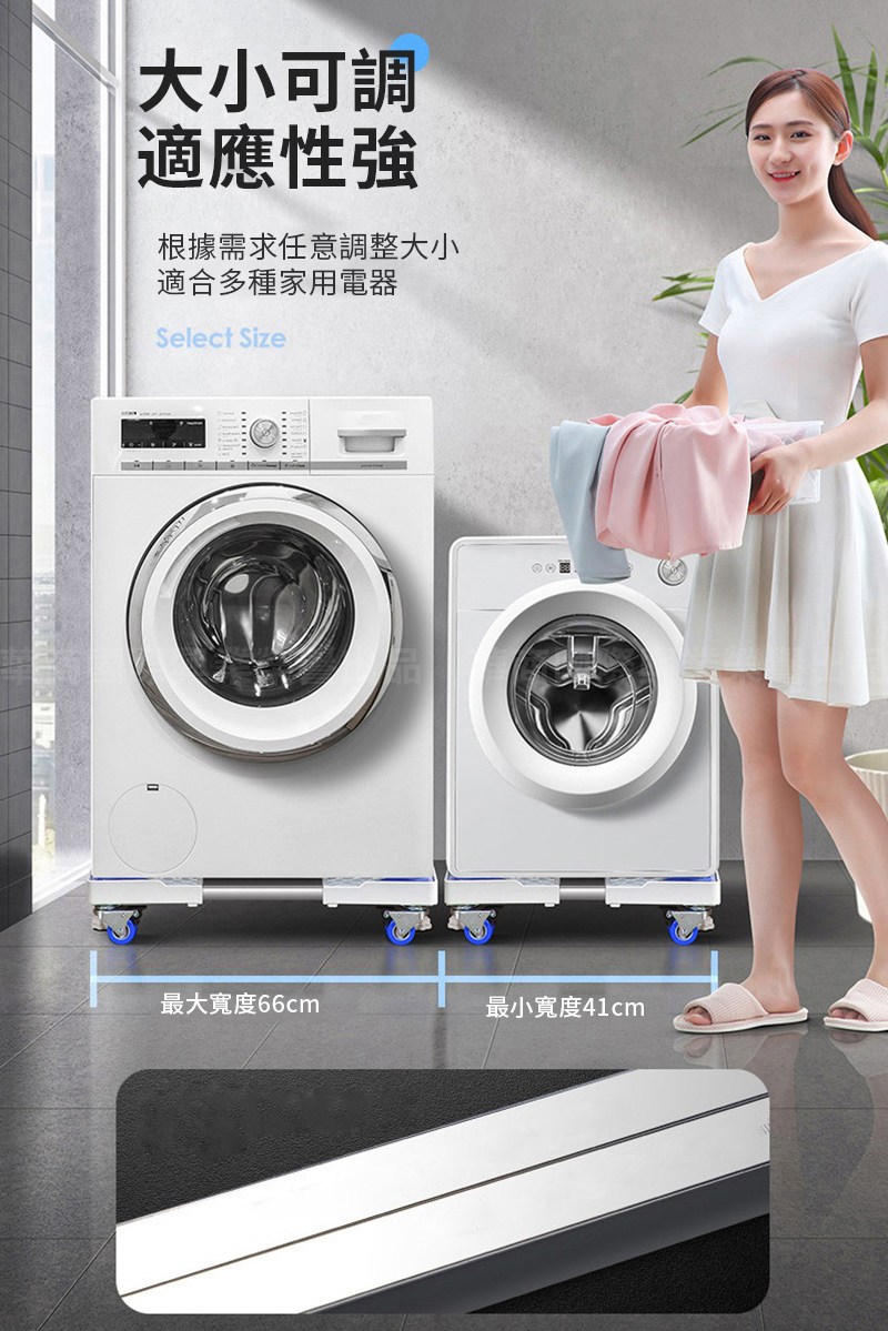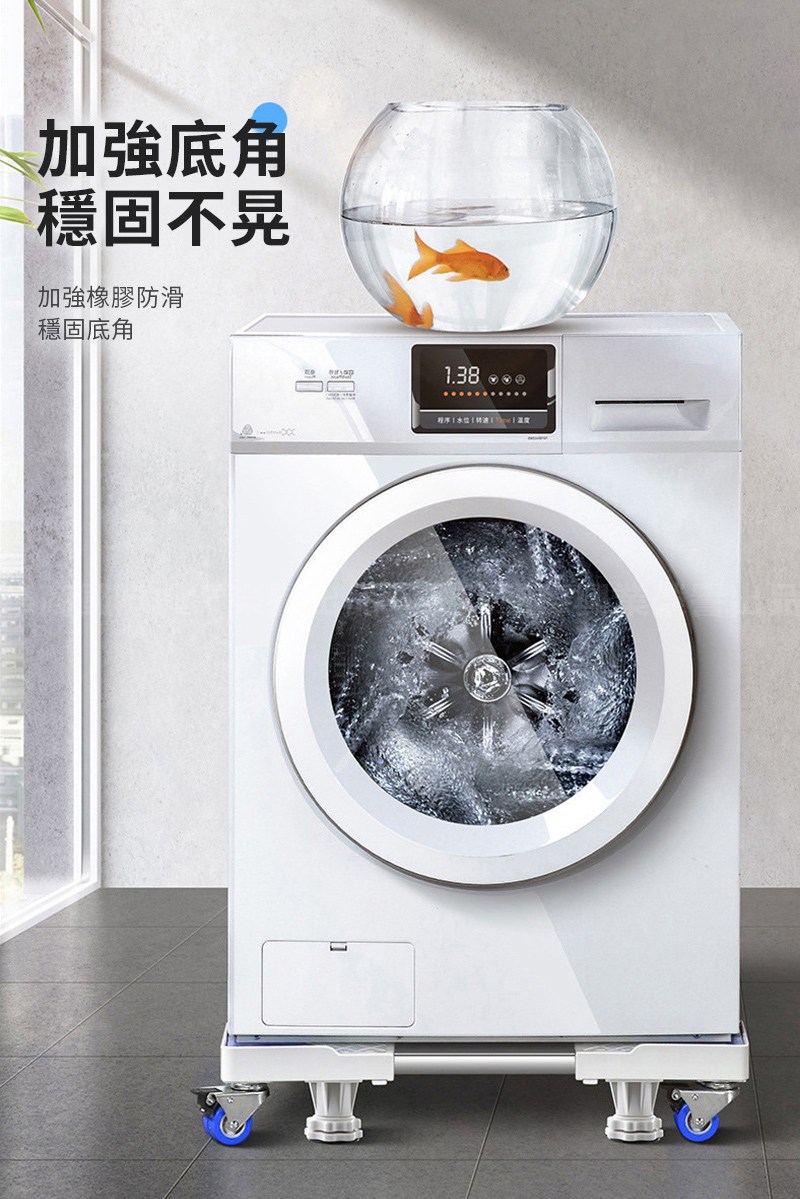 【YV61286】加大通用型雙管 8腿4雙輪冰箱洗衣機烘乾機 底座托架 可伸縮萬向輪移動置物架 直立滾筒通用
