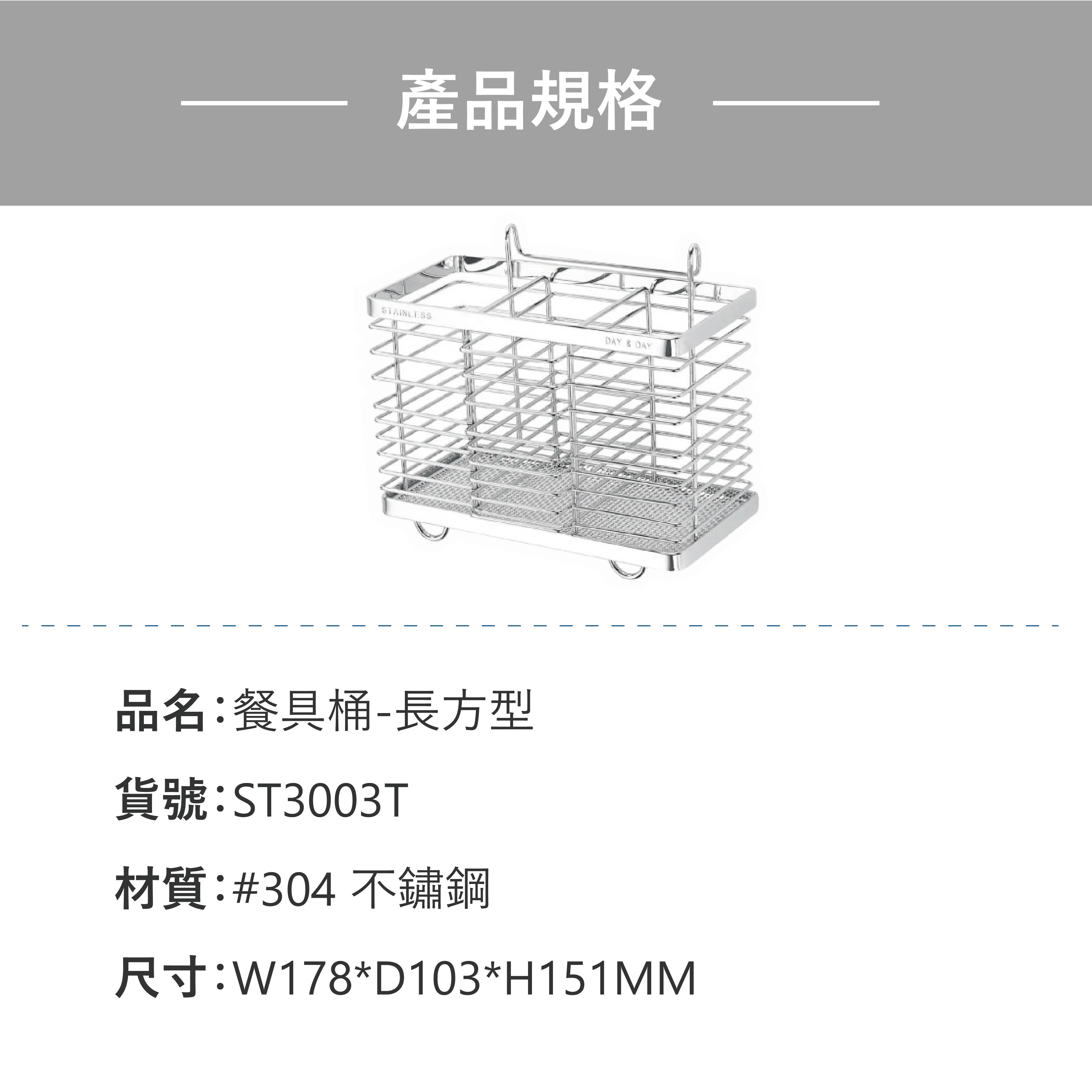 【DAY&DAY】日日衛浴 304不鏽鋼 餐具桶-長方型 ST3003T
