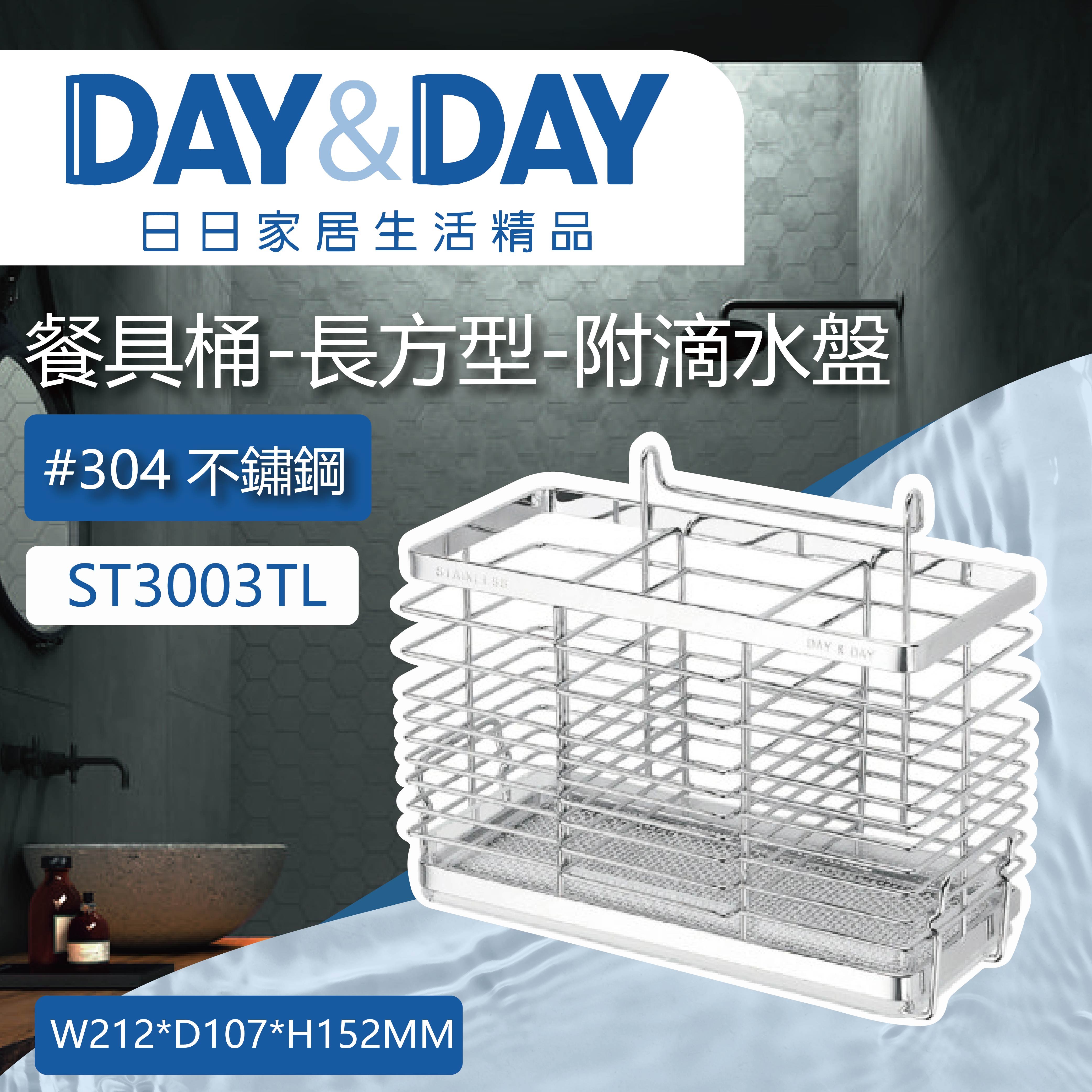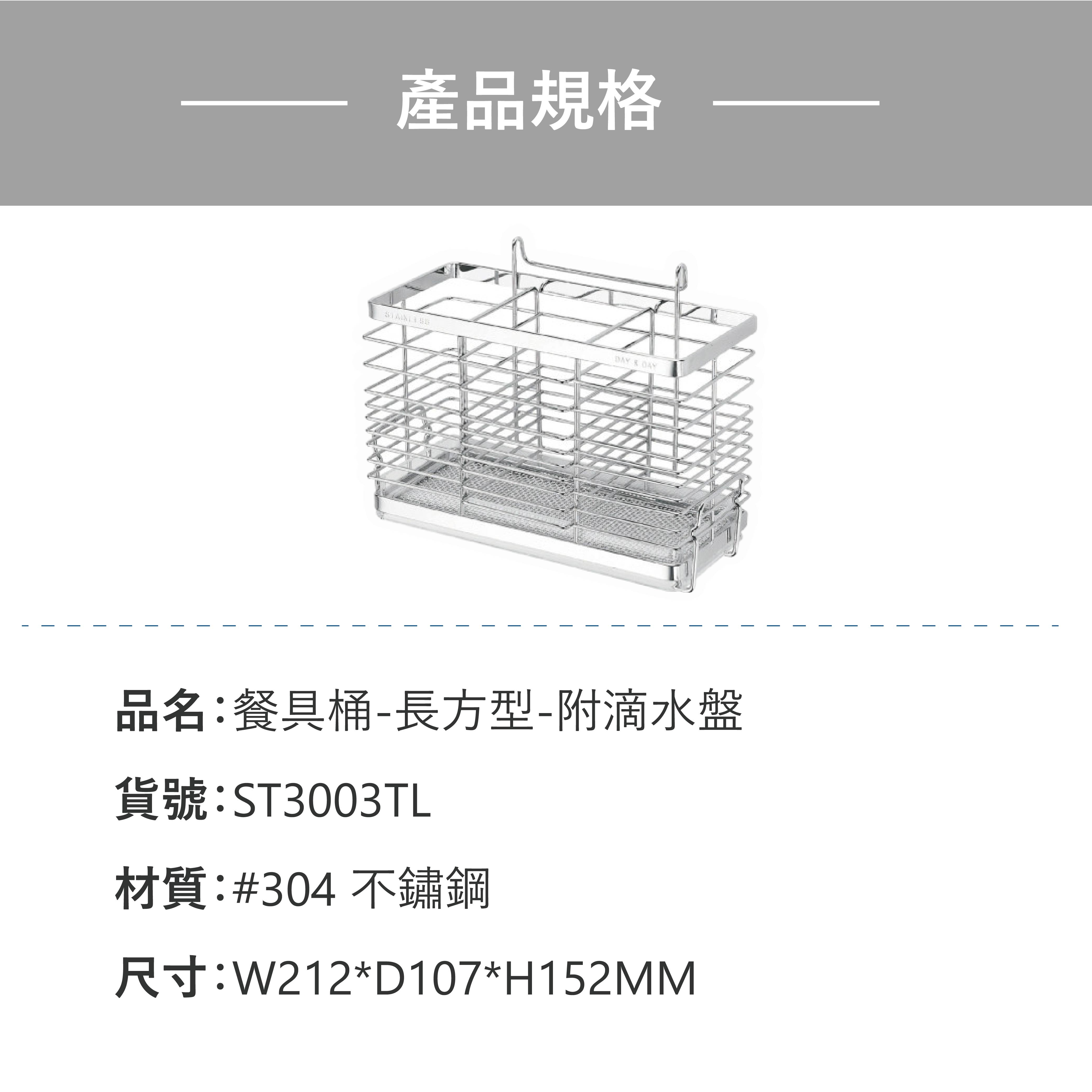 【DAY&DAY】日日衛浴 304不鏽鋼 餐具桶-長方型 ST3003T