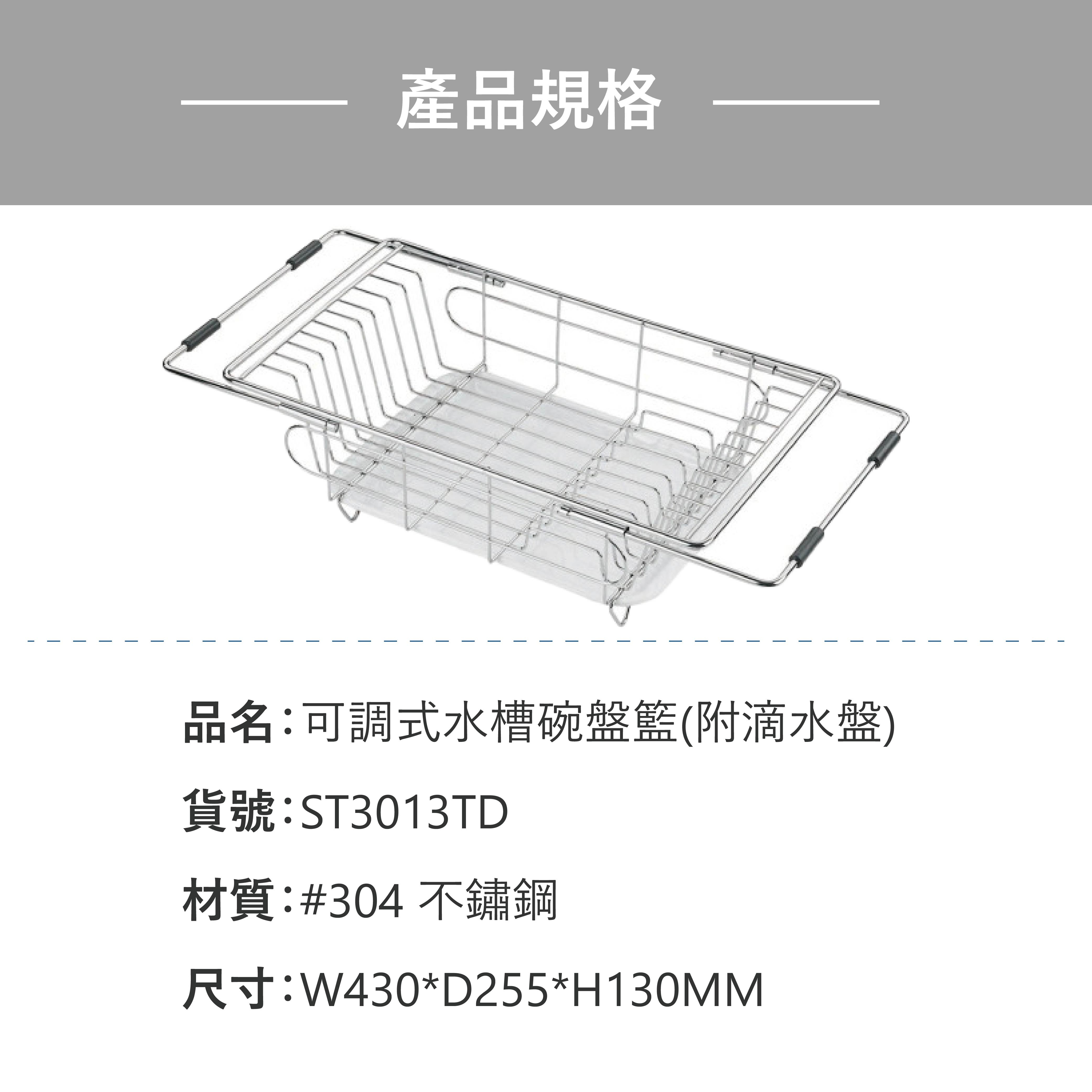 DAY&DAY 不鏽鋼可調式水槽碗盤籃(ST3013TL)