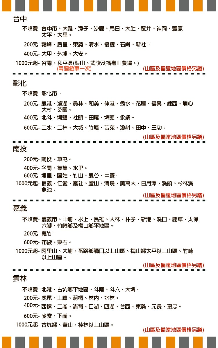 配送地址皆由配送單位判定,若有跨區費用或是偏遠費用產生,統一由廠商電聯時主動告知費用。