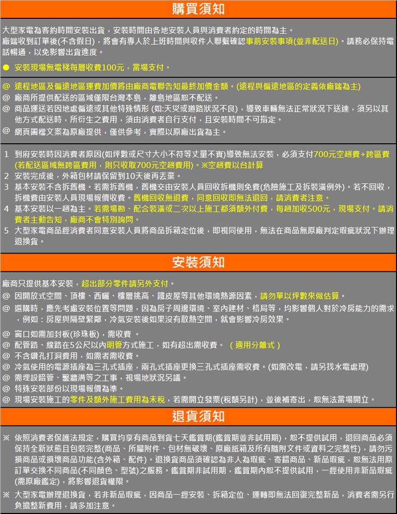 大型家電冷氣配送不包含離島地區以及部分山區,本島因配送區域眾多,無法逐一列出。