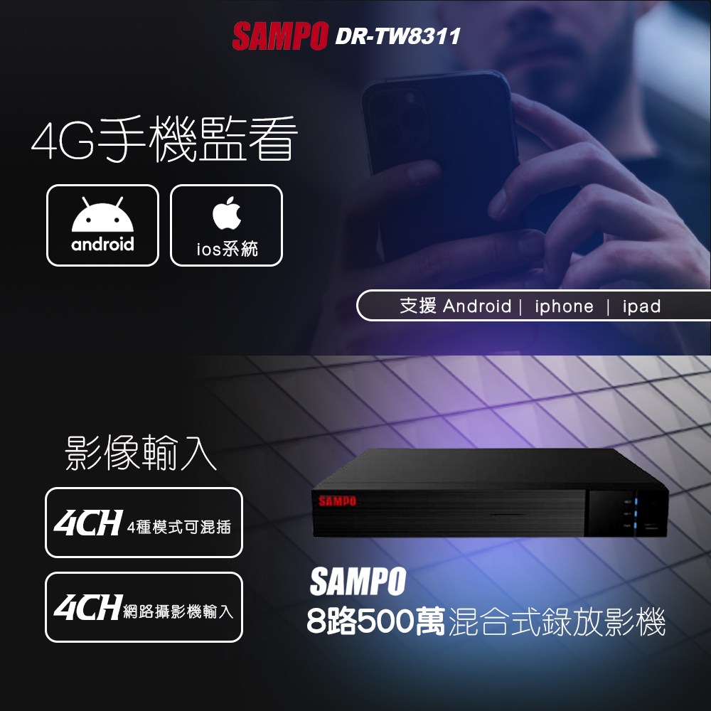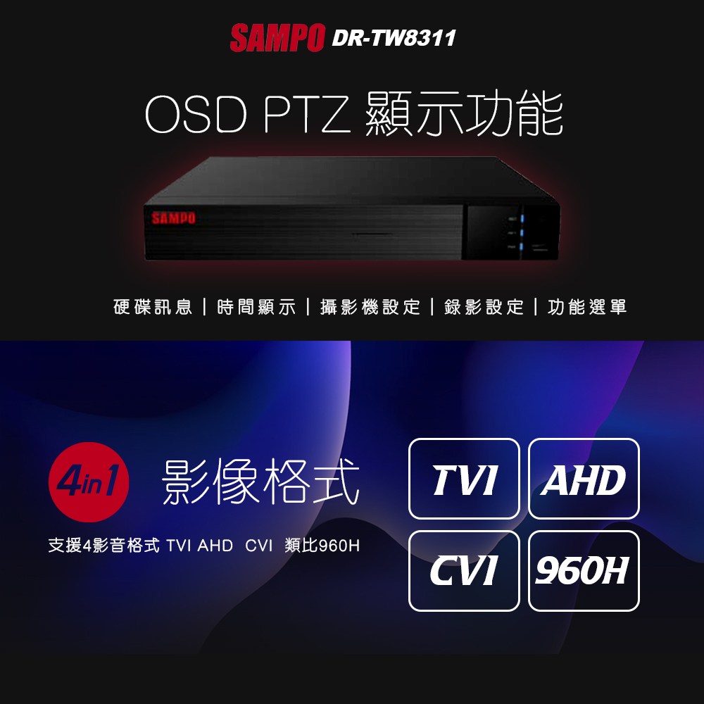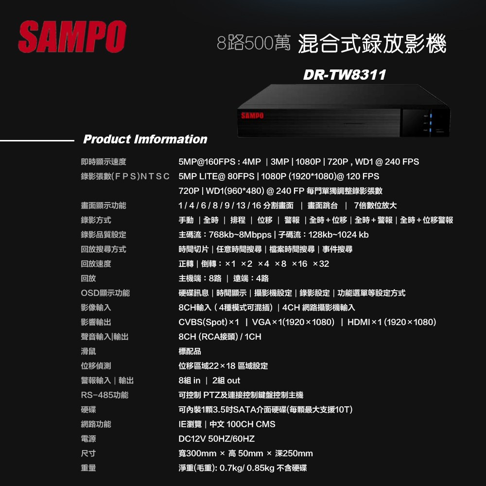 點我下載聲寶 DR-TW8311 8路500萬 混合式錄放影機 監控主機