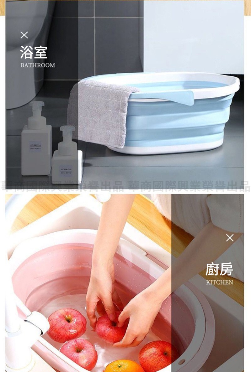 E.City 居家戶外可攜式多功能折疊收納水盆 粉色 中