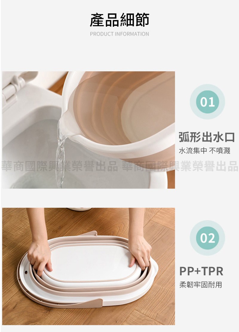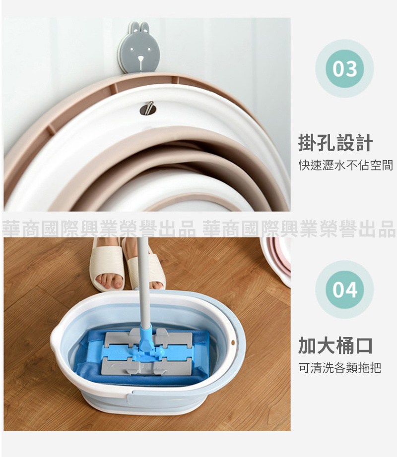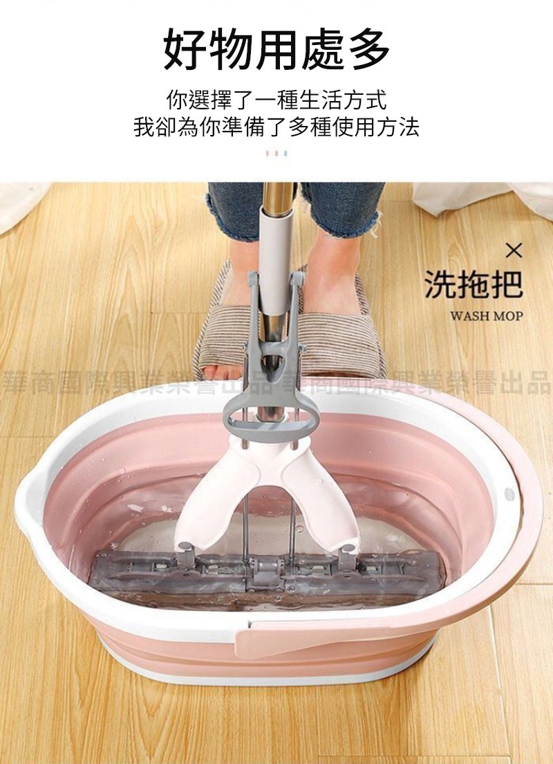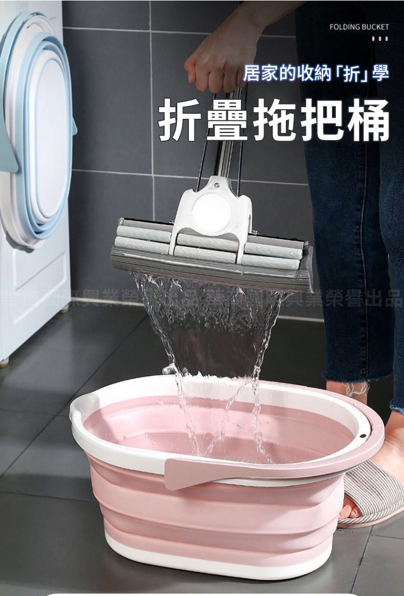 加大拖把水桶 PP+TPR材質 耐冷耐熱、抗摔耐磨 小體積 帶手提 可伸縮收納 46 x 30.3 x 20.4cm 1個