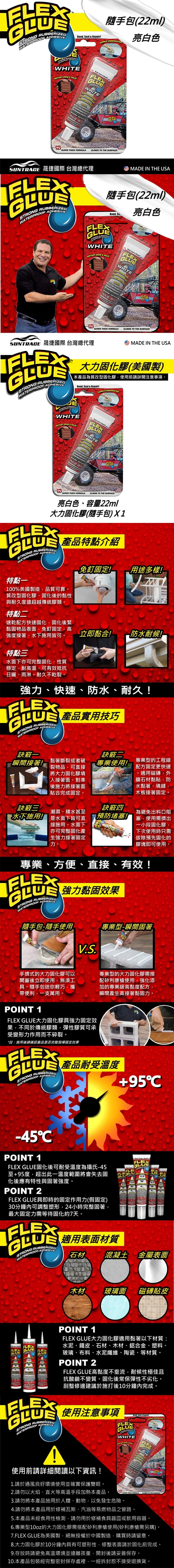 ※注意事項:使用操作前請詳閱標籤說明與警告標示!可能引起皮膚過敏反應,使用時請確實保護眼睛,手部與皮膚,戴上手套和安全護目鏡,並於通風良好環境使用。請將本品放在兒童不能接觸的地方。膠值乾固未達 24 小時請勿移動、承重、移除支撐/固定手段,以免發生危險。本產品非瞬乾型硬膠,且不適用於黏合特定塑料,如 PE、ABS 等。