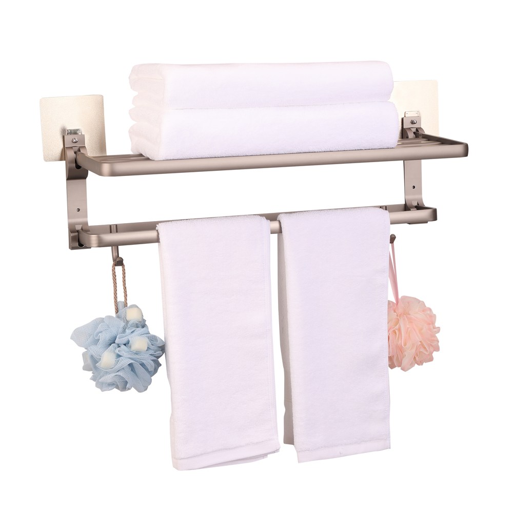 太空鋁吸盤浴室置物架 (毛巾架/浴巾架/折疊浴室架/浴室毛巾架/浴室收納架/浴室置衣架) 50 x 26 x 21.5cm 50 x 26 x 21.5cm x 65 金屬灰 1組