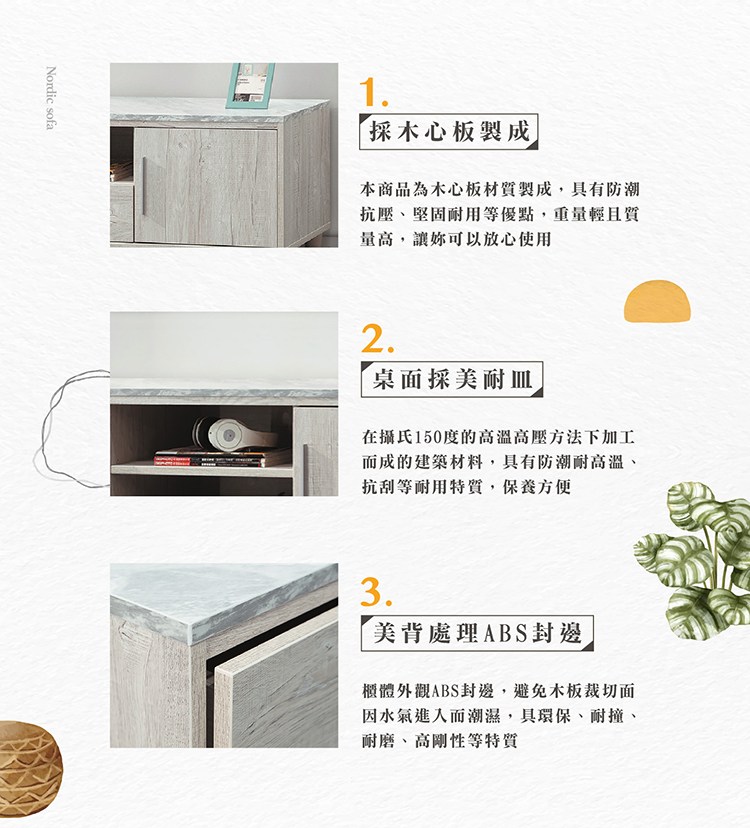 hoi!林氏木業北歐簡約拼色三抽儲物電視櫃2M UT1M