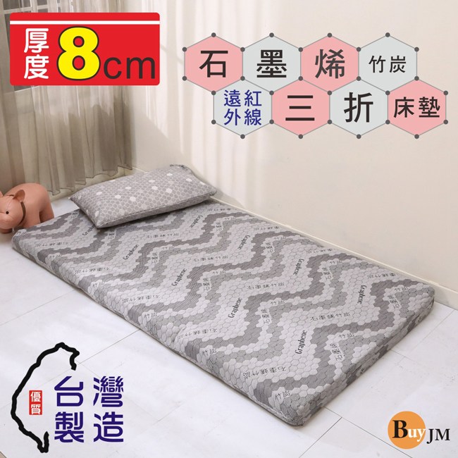 BuyJM 單人3尺石墨烯遠紅外線竹炭抗菌厚8cm折疊床墊