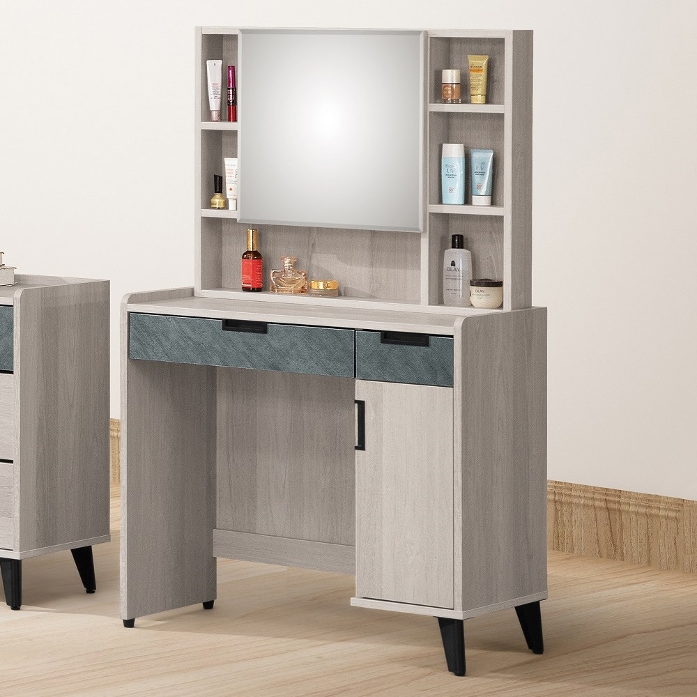 鏡台下座附2抽一門,門片打開無隔板。