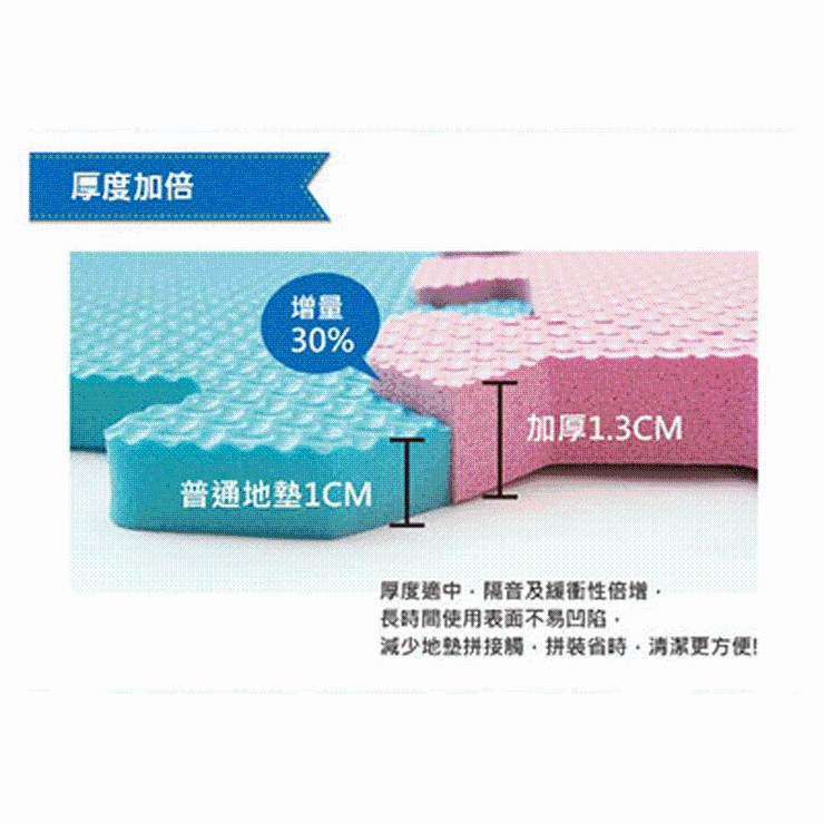 增厚30%,隔音及緩衝性倍增,長時間使用不易凹陷。