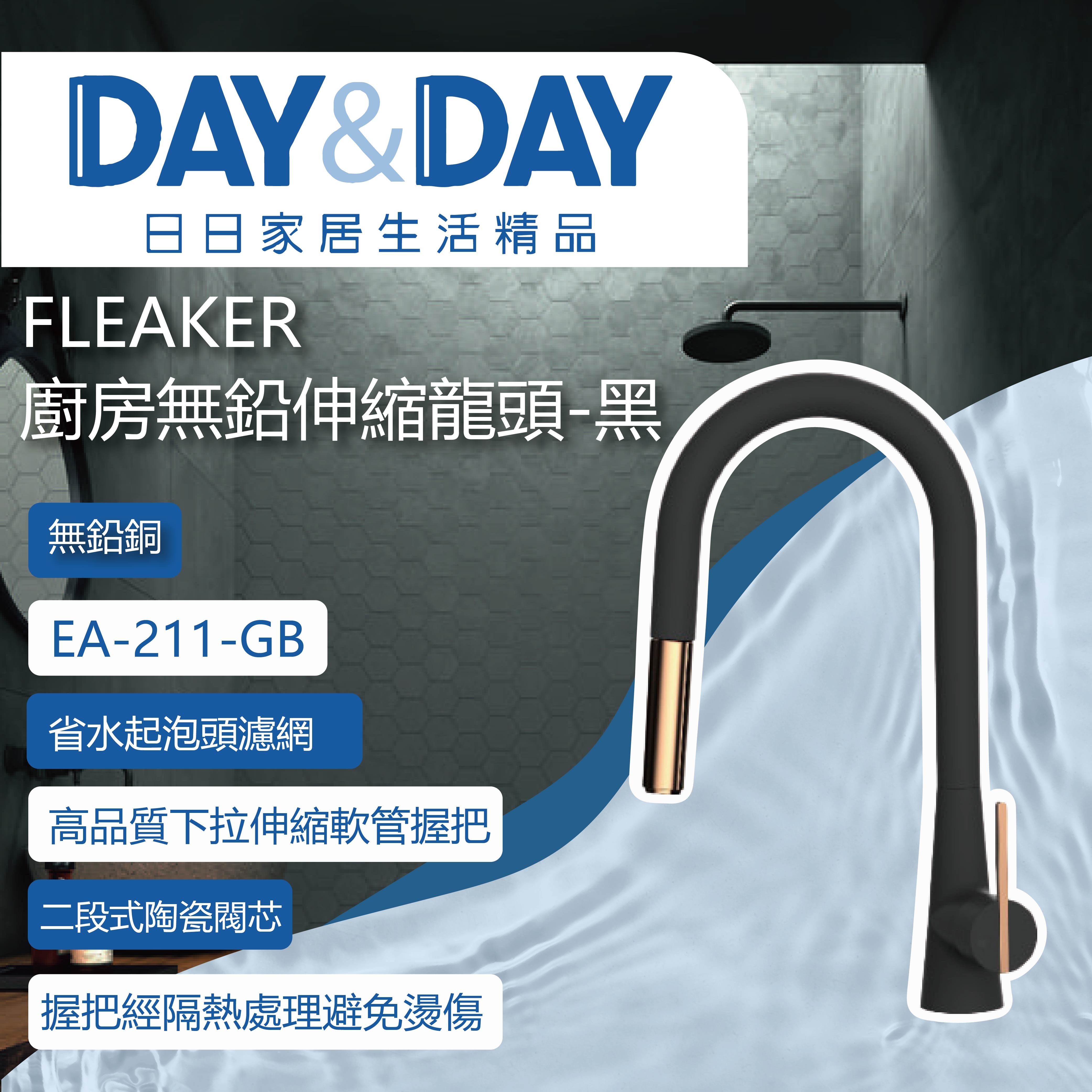 【DAY&DAY】日日衛浴 FLEAKER廚房無鉛伸縮龍頭-黑 EA-211-GB
