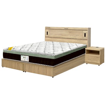 源氏木語西雅圖橡木原木色斜靠雙人5尺150x190夜燈低舖床架 Y90B28 (H014324397)