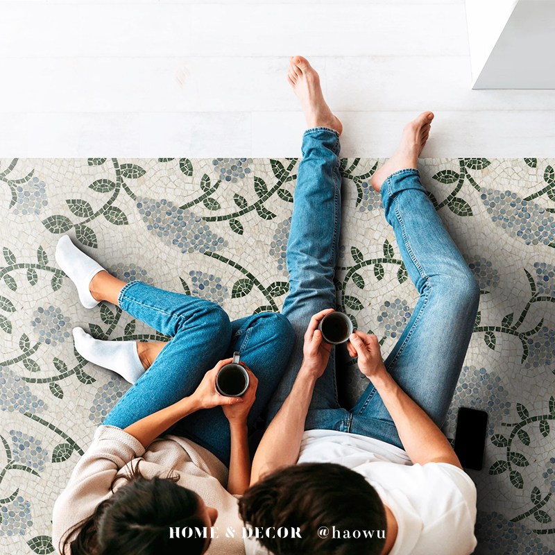 【好物良品】120x120cm_歐式系列可剪裁PVC仿皮革廚房地墊120X120 漫步花園