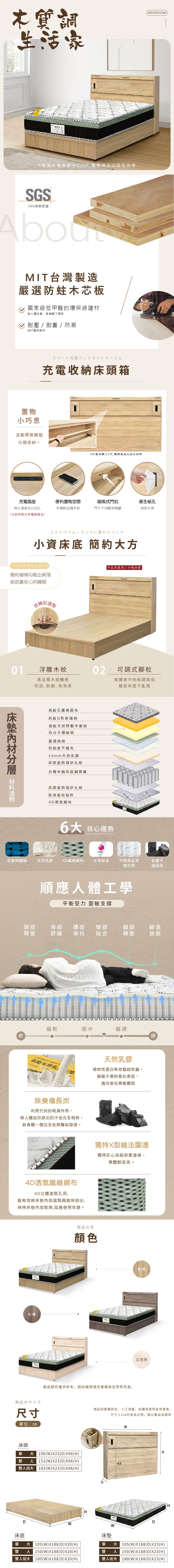 源氏木語西雅圖橡木原木色斜靠雙人5尺150x190夜燈低舖床架 Y90B28 (H014324397)