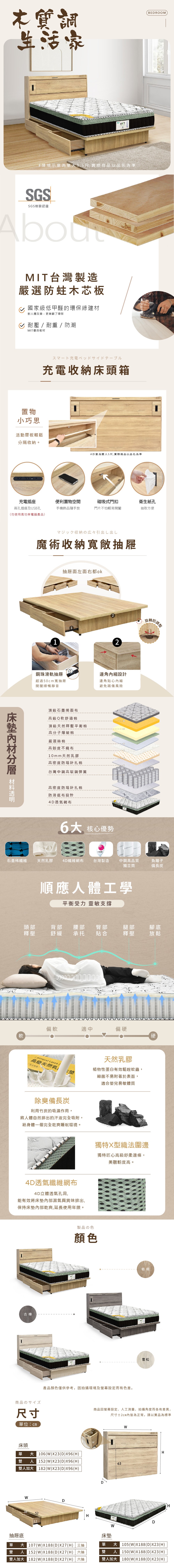【KIKY】巴清可充電收納二件床組 雙人加大6尺(床頭箱+掀床底)雪松色床頭+白橡色掀床