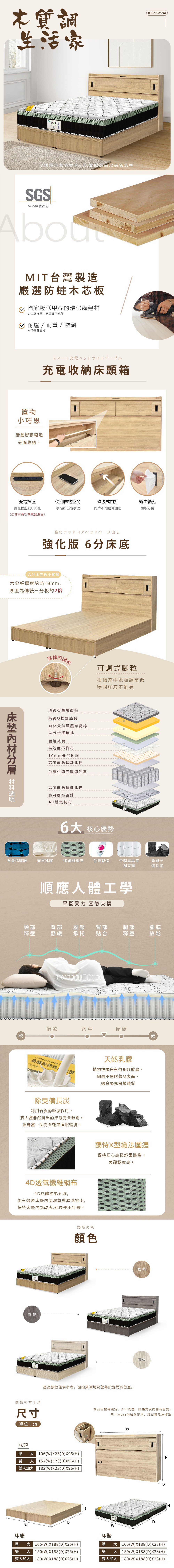 【KIKY】巴清可充電收納二件床組 雙人加大6尺(床頭箱+掀床底)雪松色床頭+白橡色掀床