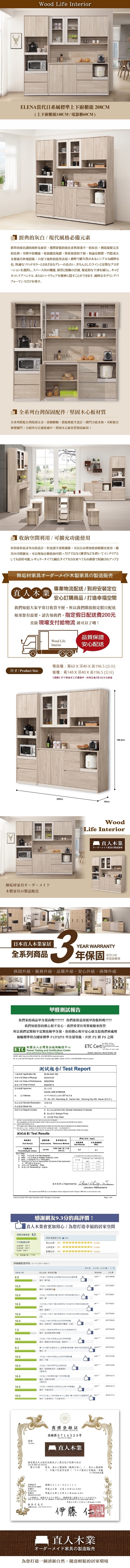 中區定規廚具 寬210cm 淺木紋門板 白色檯面 LOHAS0026