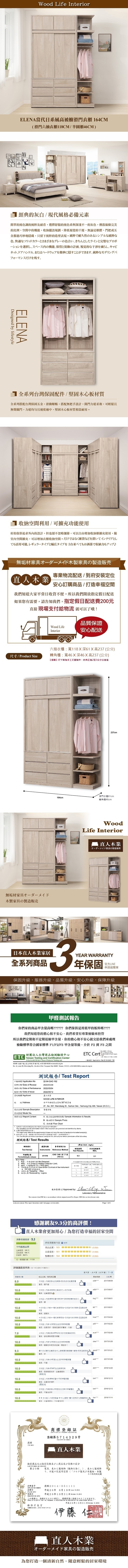 直人木業-DA極簡風白榆木164公分三抽開門衣櫃(119公分衣櫃加45公分吊衣收納轉角櫃)