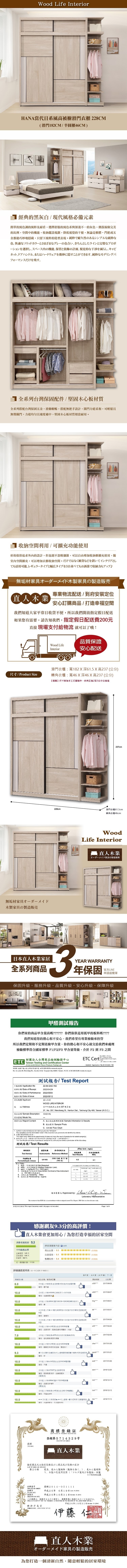 直人木業-雲白淺榆木滑門衣櫃組225公分(雙吊+三抽+中一抽)