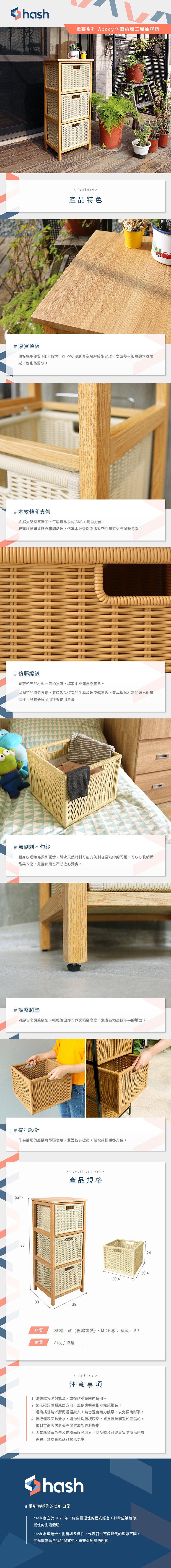 【hash】織暮系列 Woody仿藤編織三層抽屜櫃-DIY