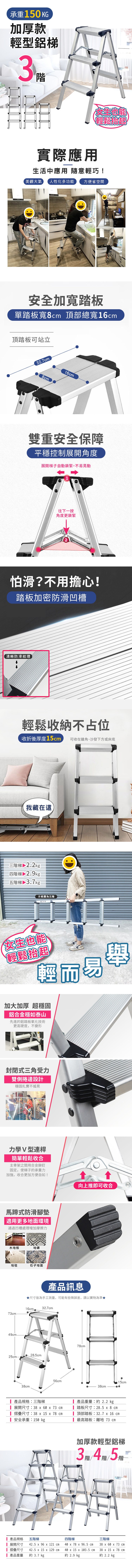 【大船回港】3階 加厚款輕型鋁梯