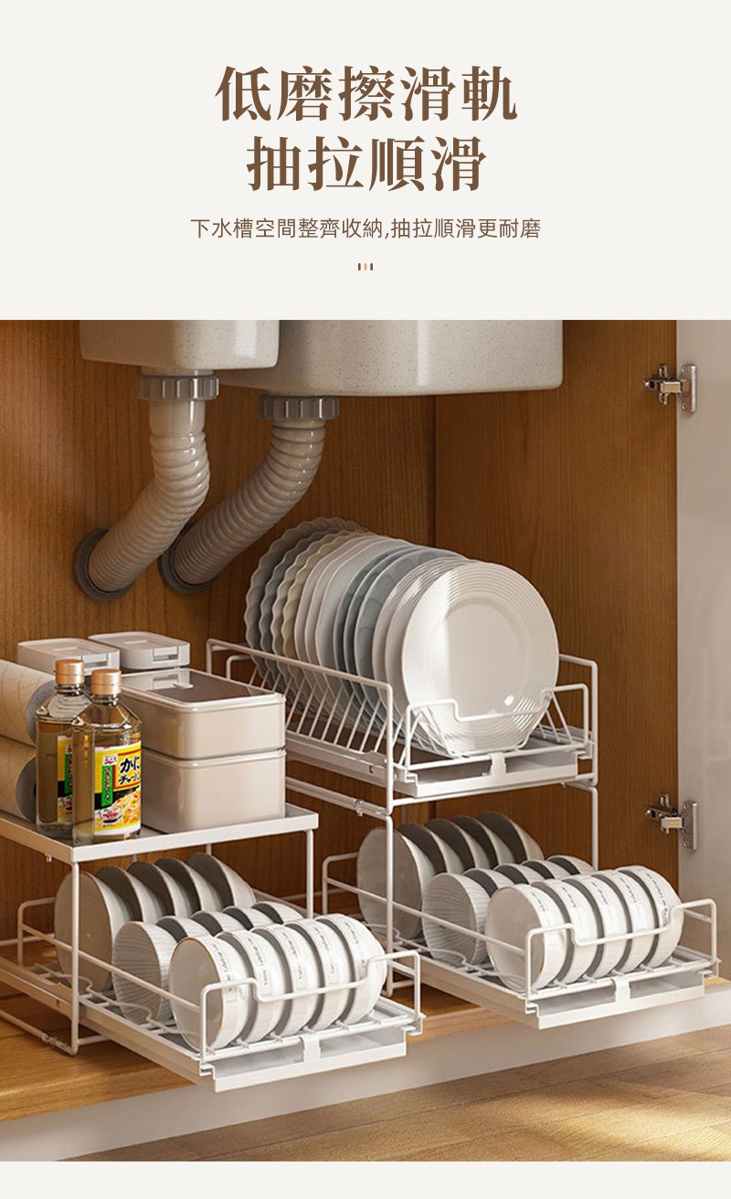 點我下載【慢慢家居】加大款-廚房可抽拉碗盤瀝水架下水槽收納架 (3款任選/可疊加)抽屜瀝水架-加大上盤