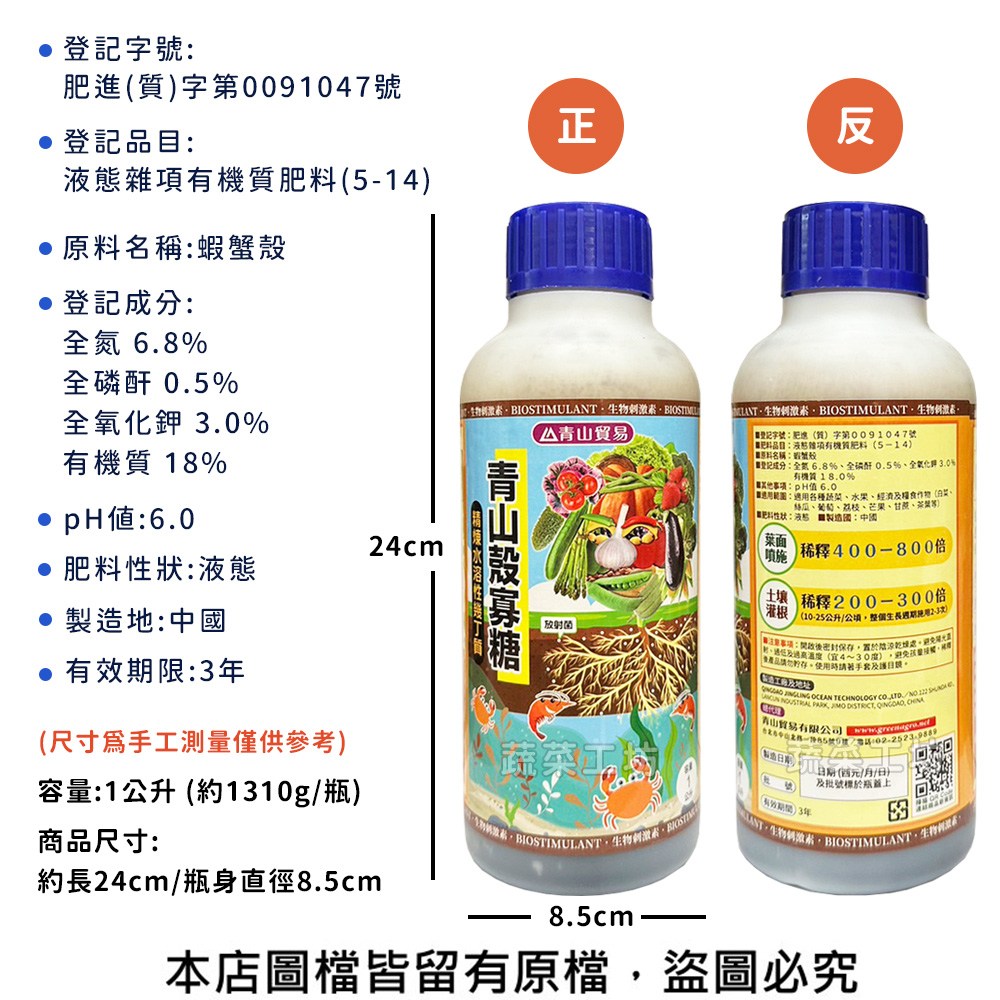 【蔬菜工坊】青山殼寡糖1公升(精煉水溶性幾丁質)天然氮磷鉀肥料成分