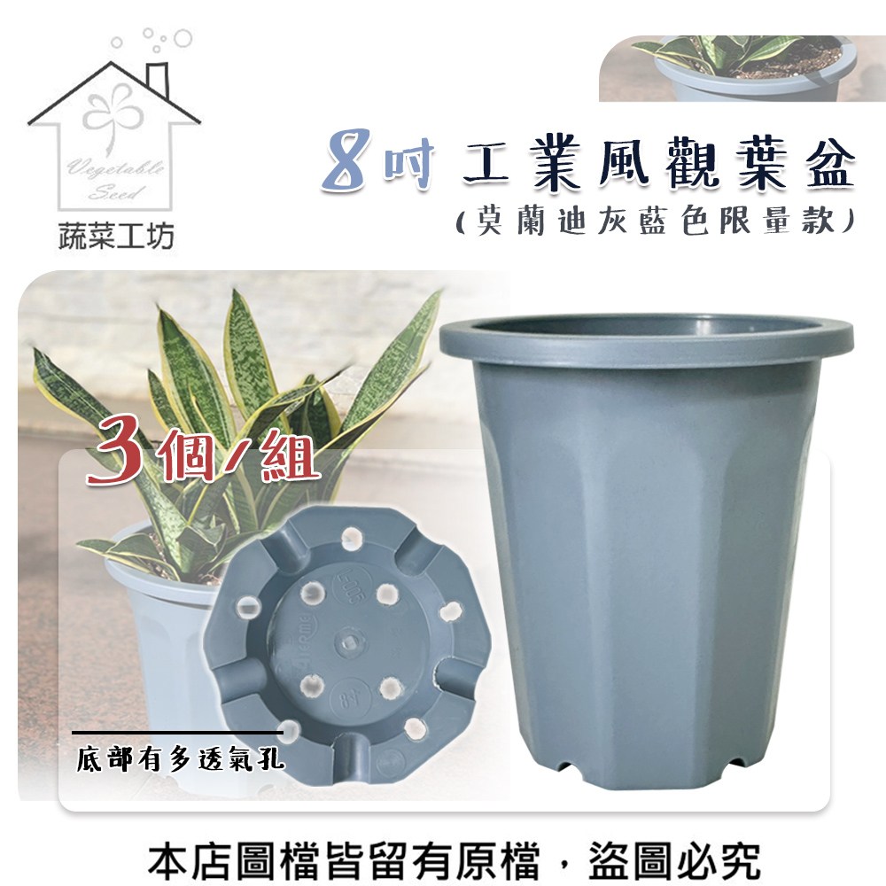 【蔬菜工坊】工業風8吋觀葉盆 (莫蘭迪灰藍色限量款) 3個/組