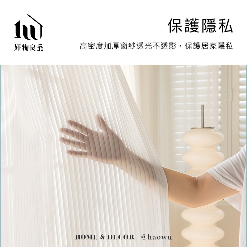 【好物良品】單片_日本直紋柔光落地窗紗簾掛桿軌道兩用