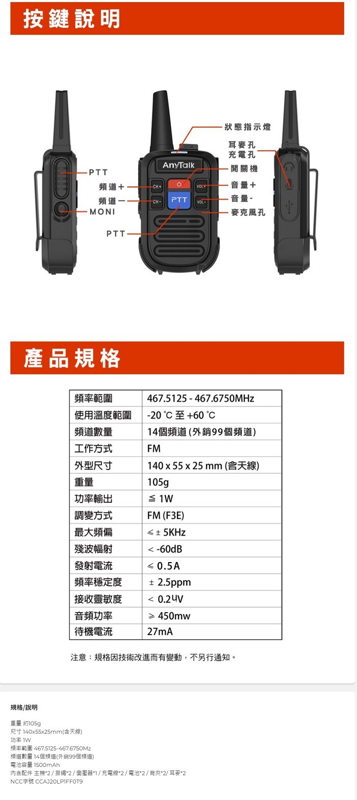 AnyTalk 免執照無線對講機 FRS-923 1組2入 (FRS923,公司貨)
